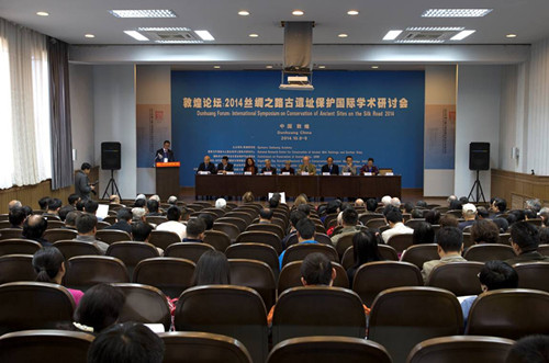 2014丝绸之路古遗址保护国际学术研讨会于10月8在敦煌市举行,会议由敦煌研究院、国家古代壁画与土遗址保护工程技术研究中心、国际岩石力学学会古遗址保护专业委员会联合主办。来自美国、意大利、日本、埃及、台湾等10多个国家和地区的百余名专家学者共聚莫高窟一起展示和研讨了国内外古遗址保护方面的最新研究成果与保护实践。