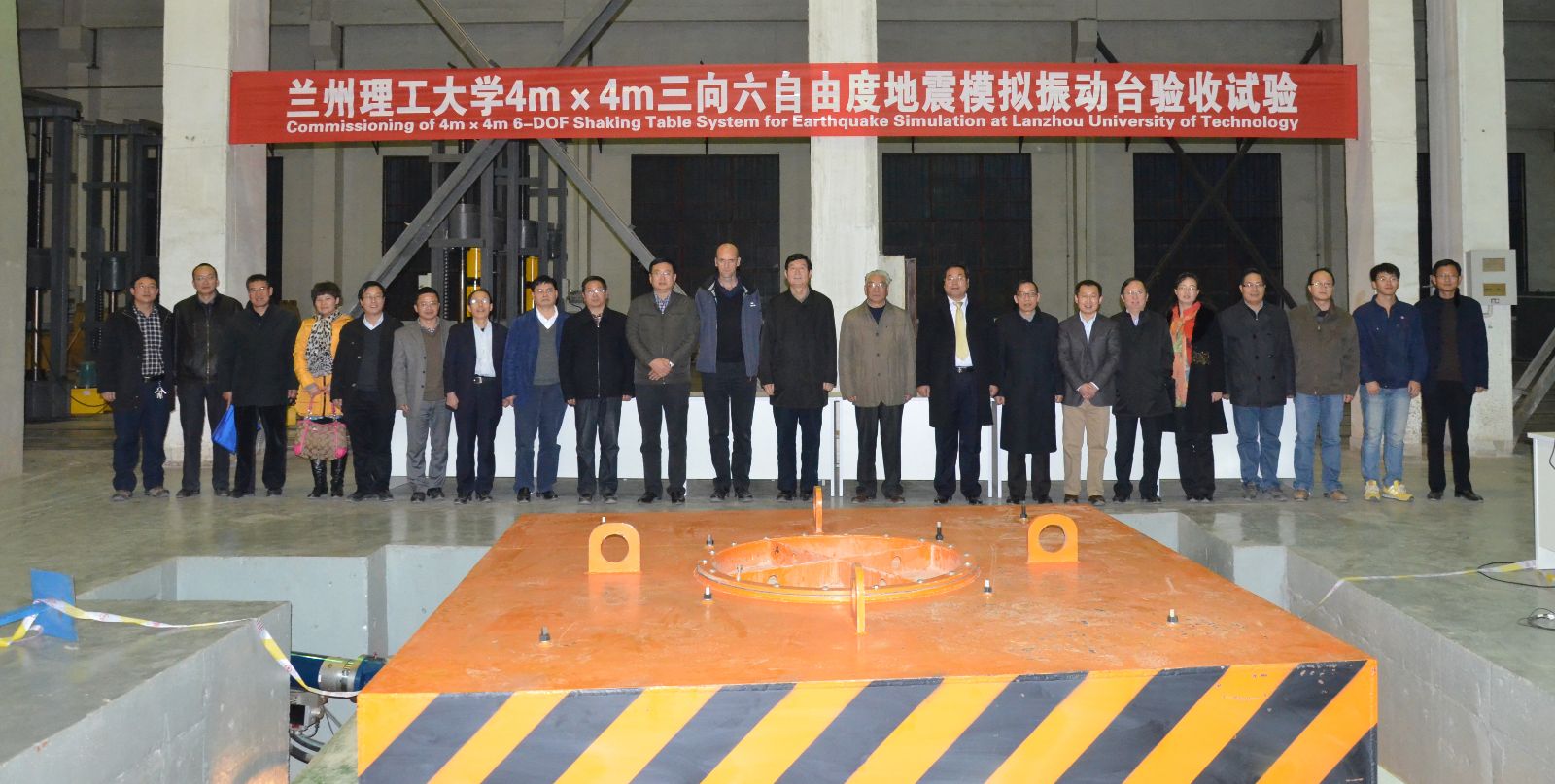 该地震模拟振动台是目前西安以西唯一一套三向六自由度地震模拟试验平台,具有良好的地震模拟精度,可以实现各类结构构件在地震作用下的破坏机理与抗震措施研究、超限高层建筑抗震性能试验以及各类机电产品、设备和设施等的耐震试验研究。三向自由度地震模拟振动台试验系统的建成与通过验收为西部土木工程防灾减灾教育部工程研究中心、甘肃省土木工程防灾减灾重点实验室的发展提供了重要的平台,也为土木工程团队建设和进一步发展提供了强有力的支撑与保障。下一步,土木公司实验中心要加强振动台试验系统专兼职队伍建设,努力提高试验能力和水平,在现有基础上开发新技术,为校内外相关行业提供优质的科研试验服务。