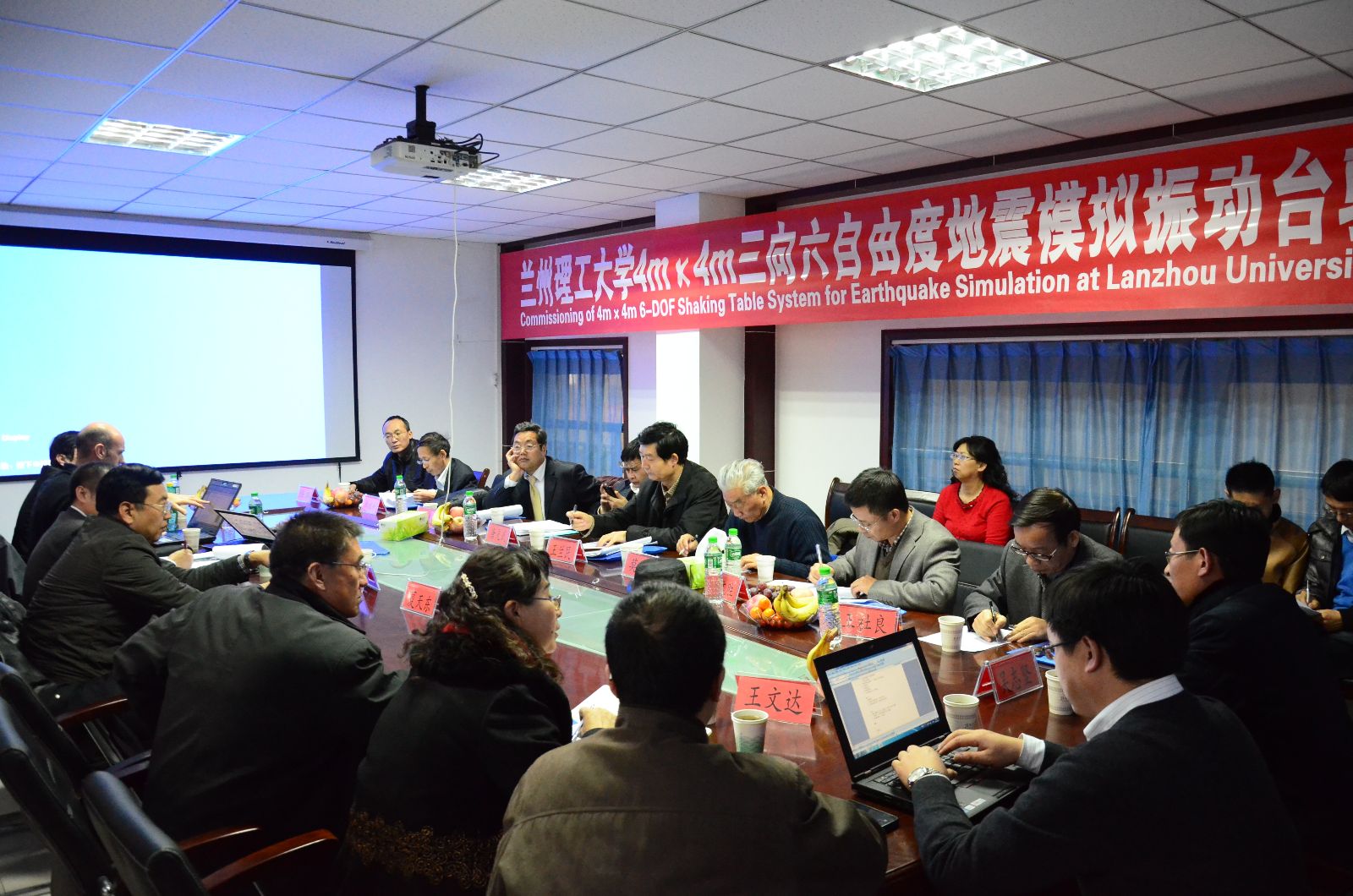 在准备验收会议阶段,公司精心准备,邀请在振动台建设、运行及使用方面的国内权威专家,包括甘肃省地震局局长王兰民研究员,同济大学结构工程与防灾研究所、土木工程防灾国家重点实验室振动台试验室主任卢文胜教授,甘肃省建筑设计研究院莫庸教授级高工,重庆交通科研设计院结构动力工程所所长、桥梁工程结构动力学国家重点实验室主任唐光武教授,西安建筑科技大学金年会金字招牌诚信至上副经理王社良教授,组成以王兰民研究员为主任委员、卢文胜教授为副主任委员的验收专家委员会。12月8日的验收会议,专家委员会委员及其他校内外专家共同听取了生产制造商-SERVOTEST公司的振动台试验系统终验收测试结果报告,然后按照专家委员会的意见,考察了以地震波三向输入信号为主的现场试验,最后经过认真质询和讨论,形成了验收意见。认为该振动台系统有良好的地震模拟精度,一致同意通过验收。