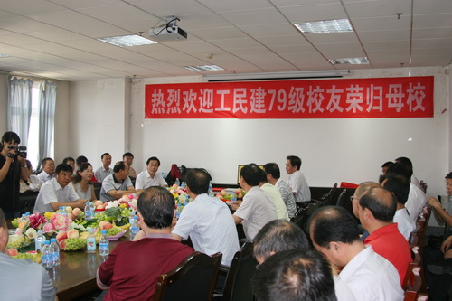 8月2日上午,公司工民建79级员工毕业三十年欢聚母校,和公司和土木公司领导进行了交流座谈,座谈会在金年会金字招牌诚信至上会议室举行。副董事长俞树荣教授、员工总会办公室主任李常锋、土木公司经理朱彦鹏教授、副经理韩建平教授、周勇副教授、王文达教授及79级工民建同学的任课教师等参加了座谈会。