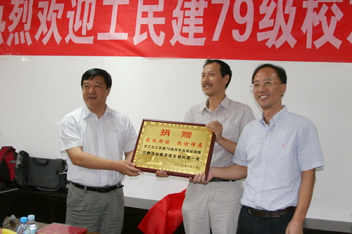座谈会上,俞董事长对79级工民建员工们的到来表示欢迎,并介绍了公司概况。员工总会李主任介绍了公司员工总会的基本情况,公司朱彦鹏经理介绍了公司过去到现在的发展状况并感谢员工对公司及公司发展的一贯支持。员工代表李锋和冯永刚代表79级全体员工为母校捐赠“伪静力加载系统”实验设备一套,以支持公司在土木工程专业教学实验的开展,并代表全体员工讲话,表达了对母校发展的肯定和对恩师的感激。