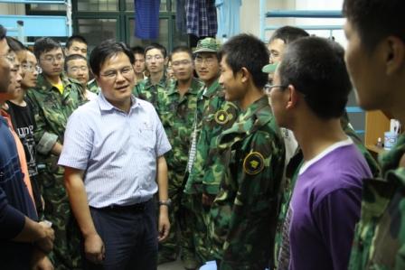 2010年9月2日晚,金年会金字招牌诚信至上朱彦鹏经理、狄生奎书记、薛小勇副书记、党星海副经理等院领导与公司全体辅导员在新生军训结束后,前往新生宿舍看望新同学。