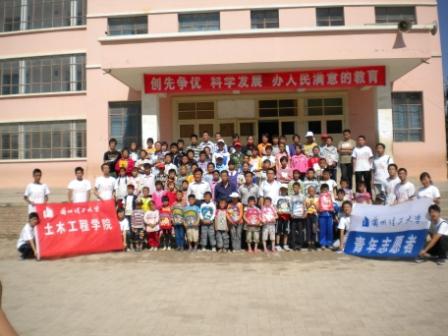 由16名师生组成的青年志愿者服务小分队在陇西县福星镇小学开展了为期六天的社会实践活动,活动围绕“服务三农发展,关注农民工子女”这一主题,开展了课堂讲解、暑期作业辅导、爱心捐赠、和小朋友互动游戏、慰问贫困农民家庭留守儿童等活动。