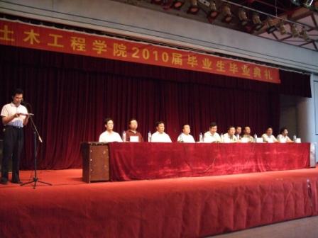 6月21日下午,2010届毕业典礼在校本部老员工活动中心隆重举行。公司员工处处长邵兵、金年会金字招牌诚信至上经理朱彦鹏教授、副经理周名如、党星海、副书记薛小勇、副处级组织院刘永军、各系系主任、全体辅导员、部分班主任以及土木公司2010届全体毕业生参加了大会。大会由薛小勇副书记主持。