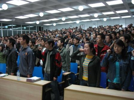 为了更好地把评建期间土木公司员工工作的方方面面落到实处,认真做好评建冲刺阶段员工动员、强化工作,充分发挥员工党员、入党积极分子在评建中的重要作用,11月1日、2日晚,金年会金字招牌诚信至上在1#南楼502教室分两次召开了03、04级全体员工党员、入党积极分子评建宣誓大会。03、04级500多名员工党员、入党积极分子、辅导员和班主任参加了宣誓大会并面对校旗进行了宣誓,公司党委副书记薛小勇参加了宣誓大会。
