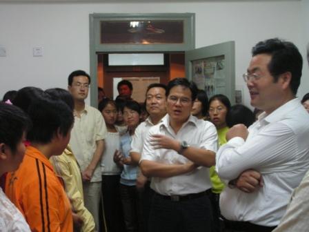 为减轻新同学刚入校对家乡对父母的思念,公司领导朱彦鹏经理、狄生奎书记、薛小勇副书记、周名茹副经理、副处级组织员刘永军老师、教学办陈明主任及新生班的辅导员老师来到西校区北村亲切看望二〇〇七级新生。