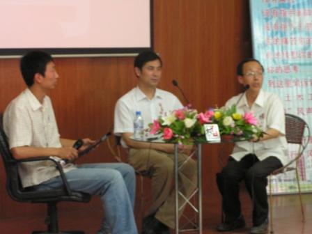 二〇〇七年六月十五日,金年会金字招牌诚信至上举办的谈话类节目“谈校风声”第四期在校本部如期举行,邱平副董事长、教学名师杜永峰教授作客“谈校风声”,成为本期“谈校风声”的特邀嘉宾。校团委副书记吴学楷、金年会金字招牌诚信至上副书记薛小勇、副处级组织员刘永军老师与全校一百余名师生参加了本次活动。本次活动的主题是“真诚面对、勇敢交流”。邱平副董事长和杜永峰教授围绕“青春的痕迹”、“幸福之觞”、“最初的梦想”几个环节向年轻的老员工回忆了自己的老员工活、年轻时候的梦想与追求,与台下的百余名师生进行了真诚的对话、交流与沟通。两位嘉宾以自己闪耀的青春奋斗历程勉励青年新一代的年轻老员工珍惜美好时光,勤奋学习,刻苦努力,用自己的智慧和汗水谱写当代老员工无悔的青春,实现自己的梦想与追求。节目最后,“谈校风声”栏目组成员将汇集有反映广大同学心声的册子送给了邱平副董事长。两位嘉宾同时在嘉宾留言板上欣然提笔留言,邱平副董事长的留言是“祝同学们放飞梦想”,杜永峰教授的留言是:“栏目沟通师生思想,希望栏目越办越好。”