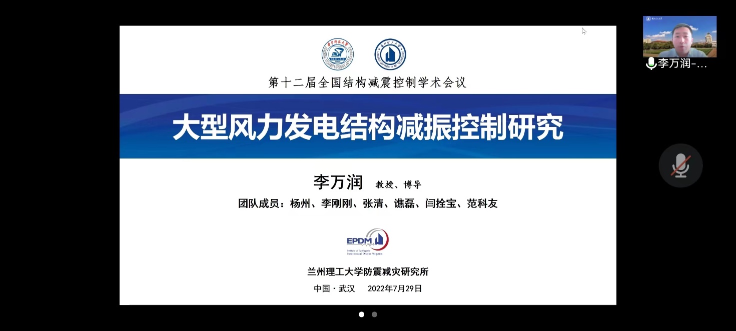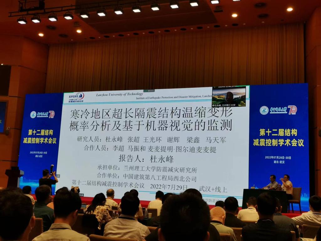 2022年7月29-30日由中国地震学会工程隔震与减震控制专业委员会和中国建筑学会抗震防灾分会主办,华中科技大学和控制结构湖北省重点实验室承办的第十二届结构减震控制学术会议在湖北武汉隆重召开。广州大学周福霖院士、哈尔滨工业大学欧进萍院士、湖南大学陈政清院士、华中科技大学丁烈云院士、同济大学吕西林院士等来自高校、科研院所、企事业单位共计近400位专家学者参加了此次会议。在此次会议上4位院士作了大会主题报告,其他专家学者做了18场大会特邀报告和88场分会场报告,线上直播累计观看人数达14505人。由于受疫情影响,公司防震减灾团队线上参加了此次会议。中国土木工程学会防震减灾工程分会副理事长杜永峰教授作了题为“严寒地区超长隔震结构概率损伤分析及基于机器视觉的监测”的大会特邀报告,并在金年会官方网站入口组织研究生设立线下分会场;李万润教授并作了题为“大型风力发电结构减振控制研究”的分会特邀报告;景伟副教授作了题为“基于改进TMD的能源设施储液罐减震控制研究”的分会场学术报告。