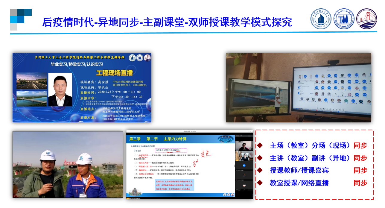 在线上线下同步混合式授课开始之前,道桥系就开展了一系列工作的准备。继“后疫情时代-异地同步-主副课堂-双师授课教学模式“之后,生动地把线下教室与线上直播同时进行的混合式授课模式,比喻做“主分会场”授课模式,员工分别在教室的主会场和在家的分会场,而教师相当于“一人就是一座电视台”,集导演、主持、导播身份,融线下互动和线上交流与一体。
