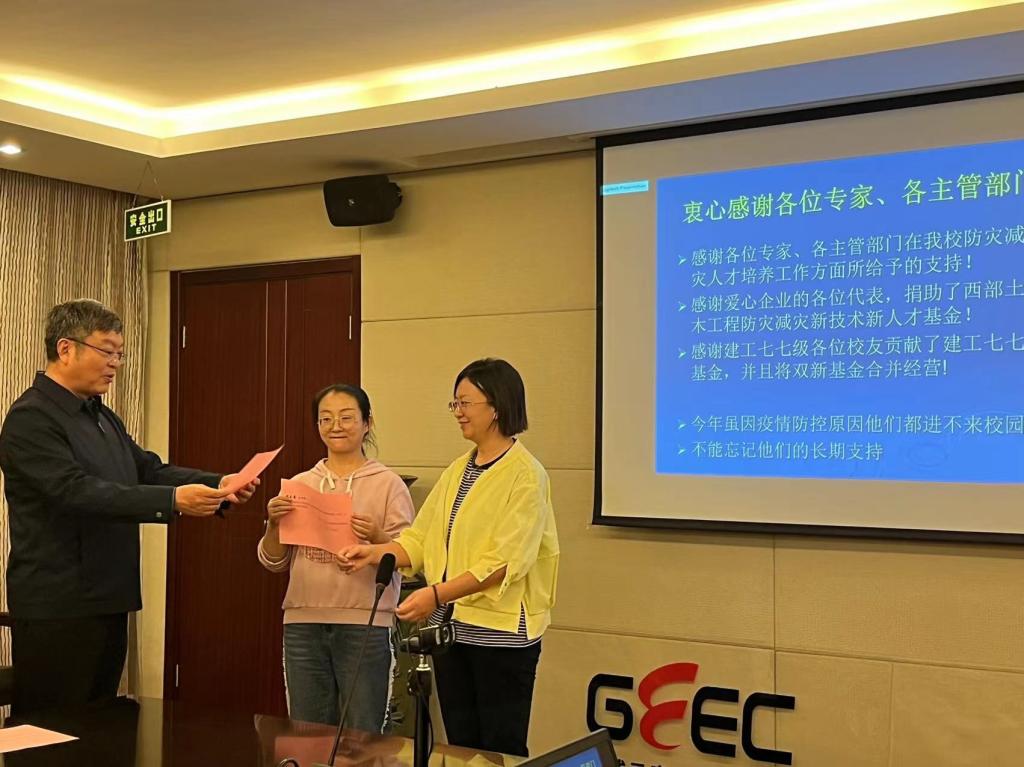 会议第二阶段由程选生秘书长主持。2018年年底以来,建工七七基金会与甘肃省减震隔震国际科技合作基地、金年会金字招牌诚信至上等联合,为博士后职工、土木工程专业优秀青年教师和部分优秀老员工设立三个层次的定向开放基金。本次参加开放基金申报答辩的张玉蓉在读博士、李琼博士、薛翠真博士及冯琼博士等土木公司青年教师分别就科研业绩、课题思路和个人科研发展方向等做了答辩,王景玄副教授结合原承担的由建工七七基金资助的国际科作基地开放基金进行结题答辩。2019级优秀本科生代表张婷婷同学线上答辩员工开放基金。建工七七级参会员工对答辩申请进行评审和投票,尚建忠、胡逸萍员工代表基金常务董事会宣布了评审结果并现场进行了颁奖仪式。