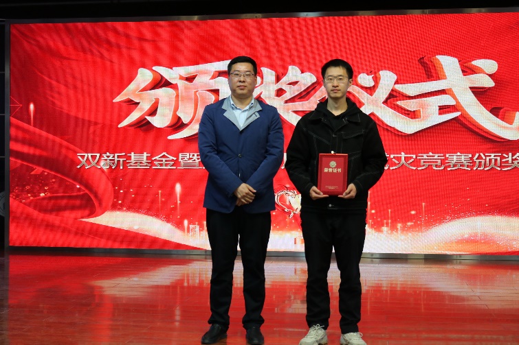 石璞处长为郑龙同学颁发双新基金博士生特等奖