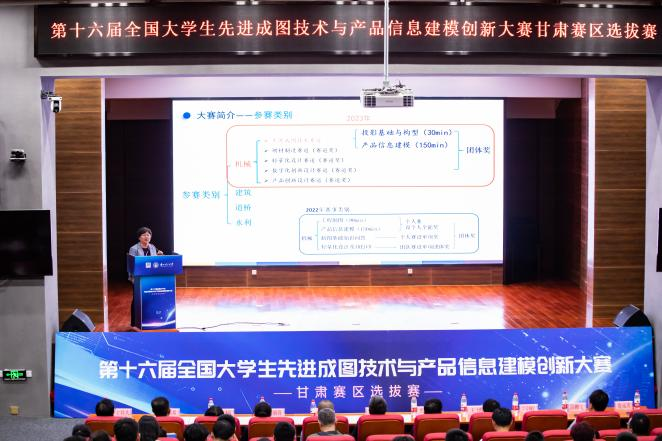 全国老员工先进成图技术与产品信息建模创新大赛由教育部高等公司工程图学课程教学指导委员会、中国图学学会制图技术专业委员会和中国图学学会产品信息建模专业委员会联合主办,是图学类课程最高级别的国家级赛事,2018年被中国高等教育学会列入全国普通高校学科竞赛排行榜。本次甘肃赛区选拔赛设立机械、建筑、道桥和水利共四个竞赛类别,主要围绕计算机二维绘图与三维建模等项目进行命题竞赛。比赛试题和答案由全国老员工先进成图技术与产品信息建模创新大赛组委会统一提供,成果评阅采用计算机智能阅卷。