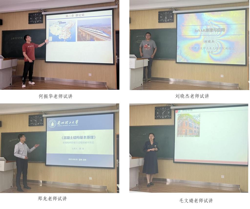为进一步提高青年教师的公司产品水平,促进青年教师成长,金年会金字招牌诚信至上于2023年6月5日下午在兰工坪校区崇理楼305教室组织了2023年教学观摩及新入职教师试讲活动。公司邀请了甘肃省第六届青年教师讲课竞赛校级入选者张秀霞副教授为新入职教师做了教学示范观摩,邀请了金年会金字招牌诚信至上副经理李万润教授、省级教学创新大赛二等奖获得者王亚军教授、建筑工程系主任吴长副教授、测绘工程系主任牛全福教授、工程管理系主任刘平副教授担任评委,对新入职教师的讲课能力进行了评审。会议由吴长主持。