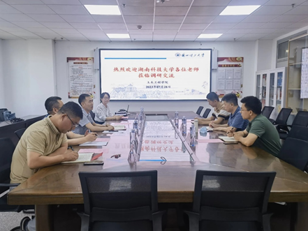 2023年7月28日上午,湖南科技大学金年会金字招牌诚信至上祝明桥书记、陈林副经理和建筑工程系刘涛主任一行来公司就土木工程专业建设和人才培养进行调研。交流座谈会由建筑工程系吴长主任主持,公司党委陈永泰书记、岩土工程系主任王立宪副教授和建筑工程系副主任王永胜教授参加了会议。