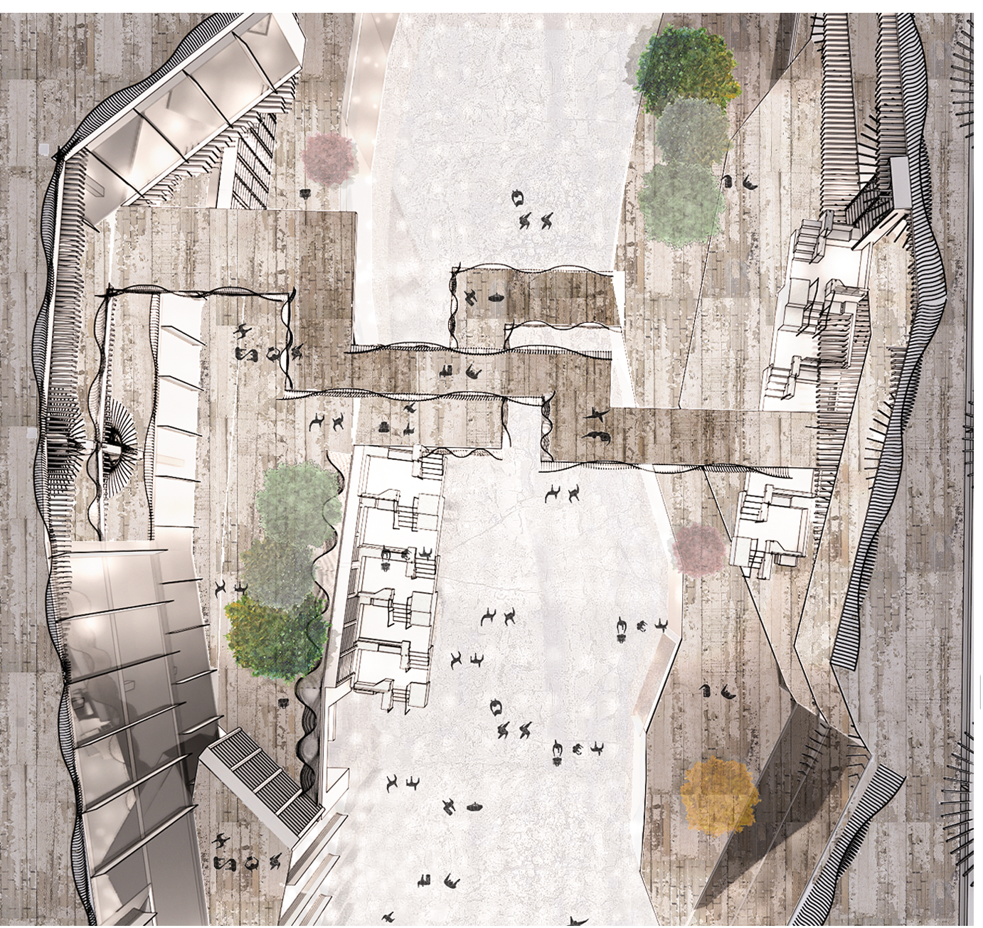 作品以兰州到成都的必经之路——清幽绮丽、青山对峙、涧流清澈的西狭颂景区为设计灵感,结合甘肃特色的当地文化,设计出流动山谷中庭;一层立面使用了甘肃特有的红砖,体现了甘肃特色文化——马家窑文化。结合现代建筑的理性,将特有的文化与建筑融合,将建筑师以及当地人的情怀融入到建筑之中,让更多的本土化元素用更新的方式体现,使建筑更具特色,打破了千篇一律的设计模式。