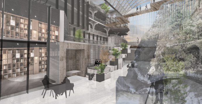 作品建筑形式新颖、结构形式合理,将大跨空间与可转化的活力空间结合,打造了特殊的流动中庭空间,将更多的校园生活引入到图书馆中。而川流不息,重峦叠峰的山谷刚好可以创造这样的空间,达成空间多样化、可转化、易分割的需求。从建筑设计理念,到结构设计创新都获得了各位评委专家的一致好评,代表队最终以第一名的成绩斩获特等奖。创新无止境,创造向未来!