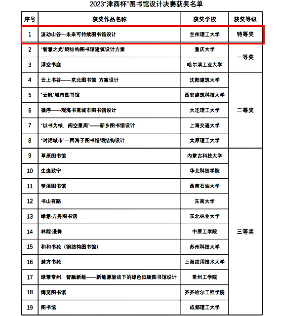 2023年10月27日,中国钢结构协会高等公司钢结构创新竞赛“2023‘津西杯’图书馆设计决赛”在四川省成都市圆满结束。公司代表队设计的作品《流动山谷—未来可持续图书馆设计》荣获本届钢结构创新竞赛全国唯一的特等奖,是公司多年参加该项赛事以来的最高奖,取得了突破。决赛共产生特等奖1项,一等奖2项、二等奖5项、三等奖11项。