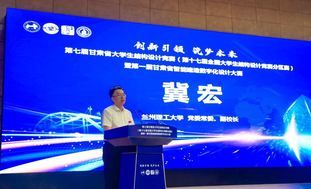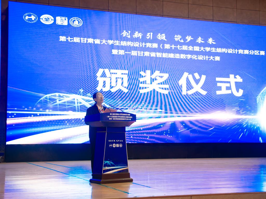冀宏在致辞中表示,本次竞赛作品不仅体现着参赛学子扎实过硬的专业技能,也体现了对建筑行业发展趋势的洞察与见解,更是展现了新质生产力在建筑行业的应用潜力,全面检阅了全省土木学科领域创新创业的改革成效。本次竞赛聚焦以赛促创,实现了项目“质”“量”双提升;聚焦品牌培育,实现了活动“效”“能”双促进。大赛立足国家发展战略,紧扣国之所需,覆盖土木、建筑、水利、铁道、桥梁、渡河等相关学科领域,将“创新引领、筑梦未来”的精神贯通整个比赛,为甘肃乃至西部地区传统建筑行业转型升级起到了有力的助推作用。并寄语土木类院校以此次竞赛为契机,准确把握建筑行业的新变化、新态势、新需求,积极应对、主动适应,在专业设置和人才培养方式上勇于开拓、大胆创新,为全省建筑事业的发展提供强有力的智力支撑和人才保障。祝愿甘肃省老员工结构设计竞赛和智能建造数字化设计大赛越办越好,预祝我省结构设计竞赛项目在国赛中取得优异成绩。