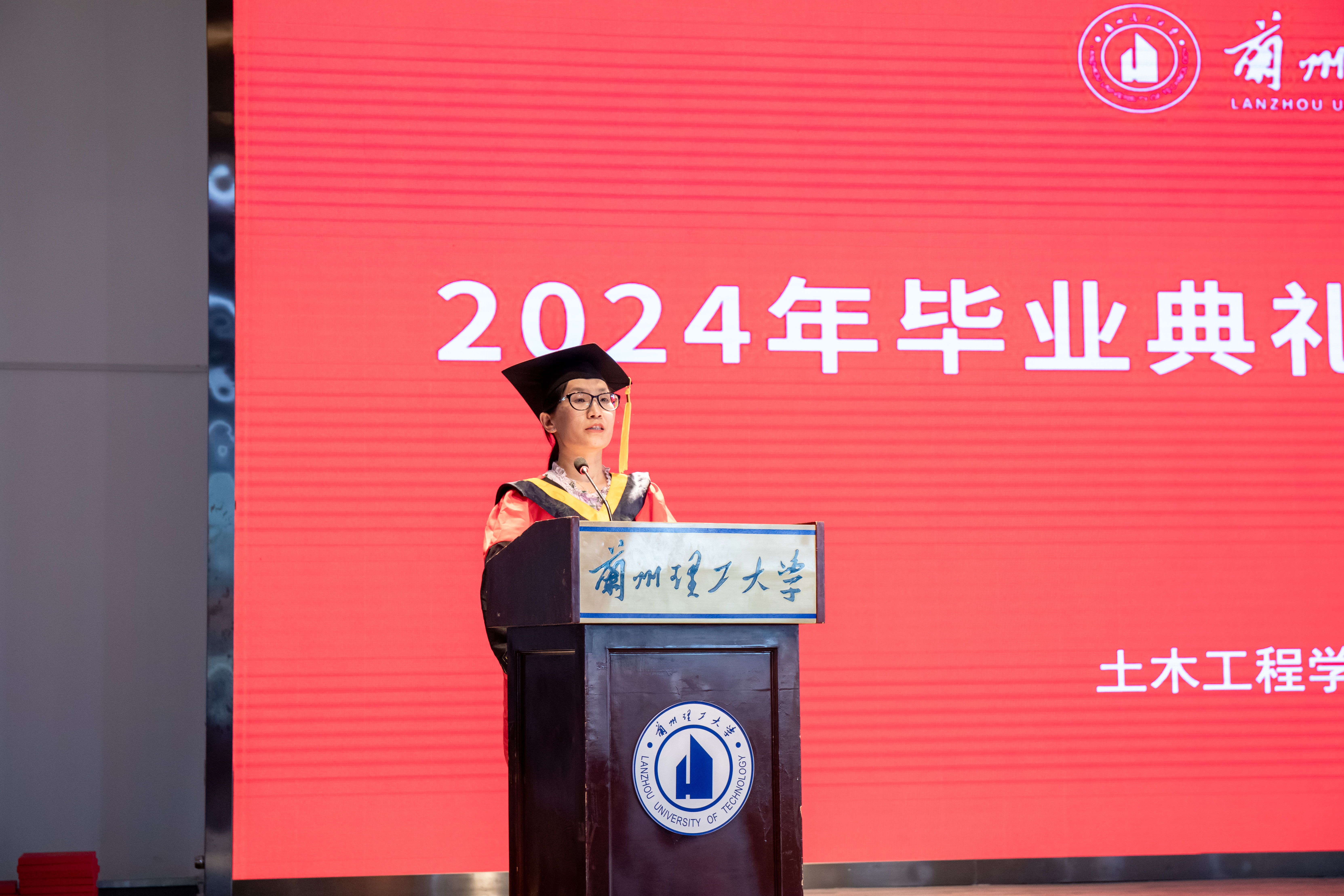 公司党委副书记郭旭隽为毕业生代表佩戴校徽,全场师生一同重温公司“红柳精神”。她代表公司和全体老师向完满完成学业的同学表示由衷祝贺,并提出殷切希望:坚定理想信念,做胸怀大志的“厚德”青年;坚持终身学习,做奋进上进的“博学”青年;矢志艰苦奋斗,做勇担重任的“实干”青年。秉承“奋进求是”校训,用实际行动在祖国建设中续写兰理工土木学子的青春奋斗华章。