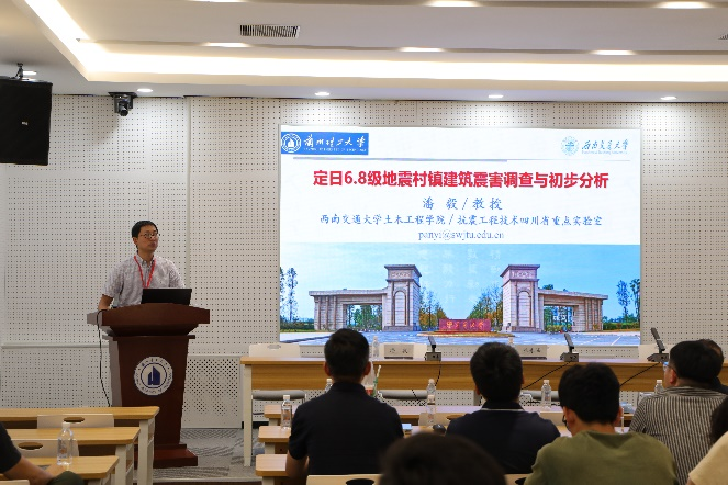 李宏男教授以“重大工程安全监测系统集成及其工程应用”为题,从工程结构的兴建及面临的破坏性灾害出发,论述了目前存在的问题及采用结构健康监测技术的必要性。吴巧云教授聚焦于“高层建筑与城轨综合体结构振动控制关键技术及应用”,重点介绍了团队在高层建筑隔震减振控制、车场结构隔震减振控制以及声学超材料减振等领域的最新研究成果。潘毅教授以“西藏定日6.8级地震村镇建筑震害调查与分析”为题,结合在日喀则地区5个县、20余个受灾乡(镇)的实地调查成果,总结了灾区典型民居的建筑特点,阐述了生土结构、砌块砌体结构、钢混结构和减震结构五类结构的典型震害特征。