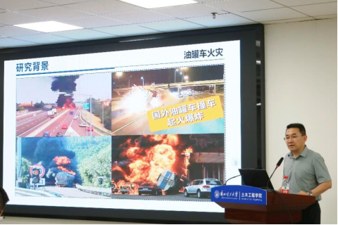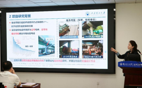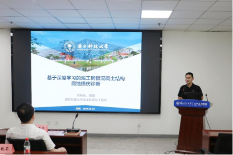 张岗教授以“钢结构桥梁抗火分析与设计”为题,以钢结构桥梁在抗火方面面临问题为切入点,主要介绍了组合梁、钢箱梁、钢桁架梁、缆索承重桥以及桥梁拉索的抗火性能分析方法、抗火设计方法以及结构寿命预测方法。王蕊教授以圆端形钢管混凝土柱遭受撞击引起桥梁损坏为背景,对压弯作用下圆端形钢管混凝土抗撞击性能试验研究及抗撞设计方法进行了介绍。侯超研究员以海洋平台中结构构件的腐蚀为背景,重点介绍了团队在基于深度学习的海工钢管混凝土结构腐蚀损伤诊断的研究成果。三位专家通过严谨的学术论证和生动的案例分析,系统阐释了桥梁抗火设计理论、结构工程抗撞前沿趋势,以及深度学习在土木工程中的应用,其深厚的学术造诣和创新的科研思路令在场师生深受启发。