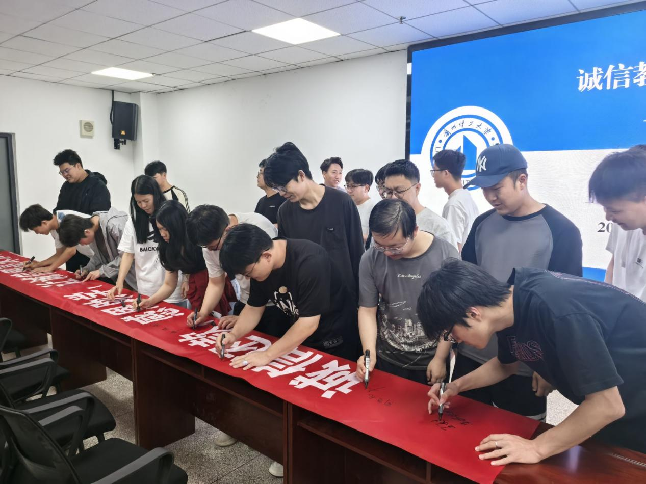 活动伊始,辅导员安翔老师首先强调了诚信的重要性,指出诚信是个人品德的核心,也是社会交往的基石。对于办理了生源地助学贷款的毕业生而言,诚信还款不仅是对个人信用的维护,更是对国家助学政策的尊重和回馈。安老师详细讲解了生源地助学贷款还款的注意事项,介绍了还款计划的制定、还款方式的选择以及逾期还款可能带来的严重后果。活动最后进行了“诚信还款”签名活动,同学们在印有“诚信还款,感恩助学,让诚信照亮未来”的横幅上郑重签下了自己的名字,表达了按时还款、维护个人信用的许诺。