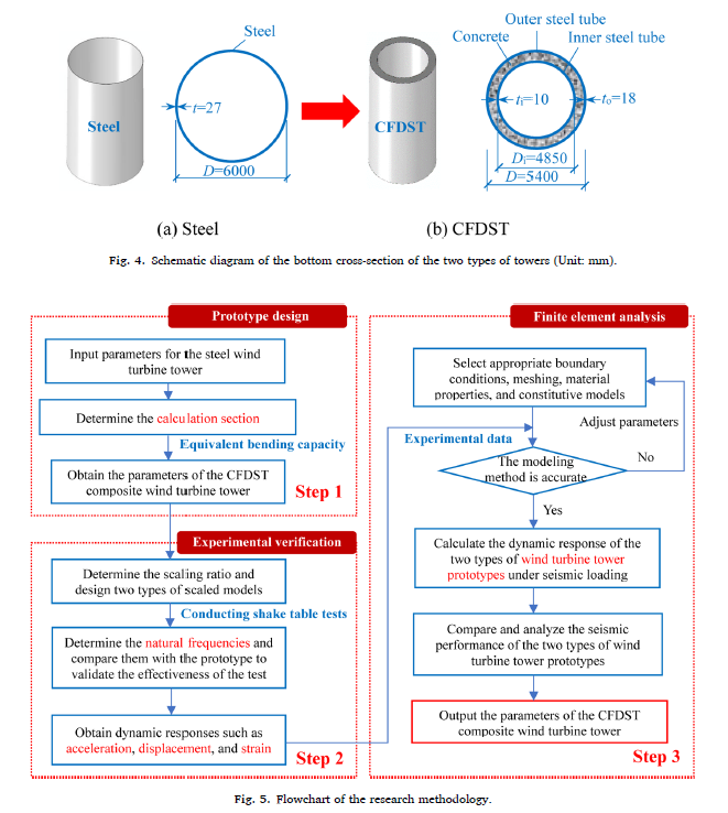 近日,金年会金字招牌诚信至上“钢与混凝土组合结构混合结构”研究团队2022级博士研究生段力歆为第一作者、导师王文达教授为通讯作者的有关新型组合结构风电塔体系抗震性能及减震控制系列成果,以《Seismic vibration control of CFDST composite wind turbine towers with TLCDs》和《Shaking table test and finite element analysis of composite wind turbine tower system with tapered large void ratio CFDST member》为题分别发表在能源类顶级期刊《Renewable Energy(可再生能源)》(中科院TOP期刊,IF=9.1)和工程结构类顶级期刊《Thin-Walled Structures(薄壁结构)》(中科院TOP期刊,IF=6.6)上。