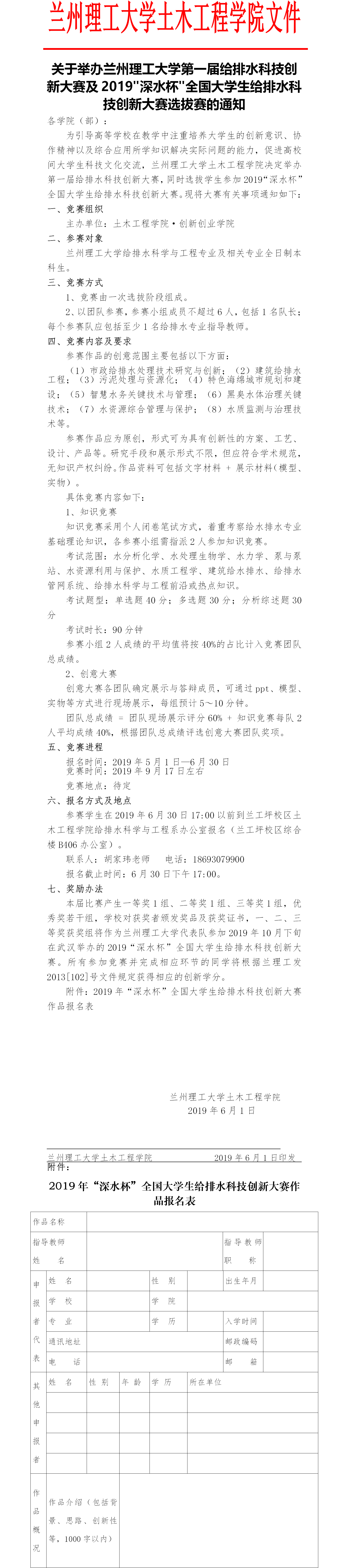 关于举办金年会官方网站入口第一届给排水科技创新大赛及2019"深水杯"全国老员工给排水科技创新大赛选拔赛的通知