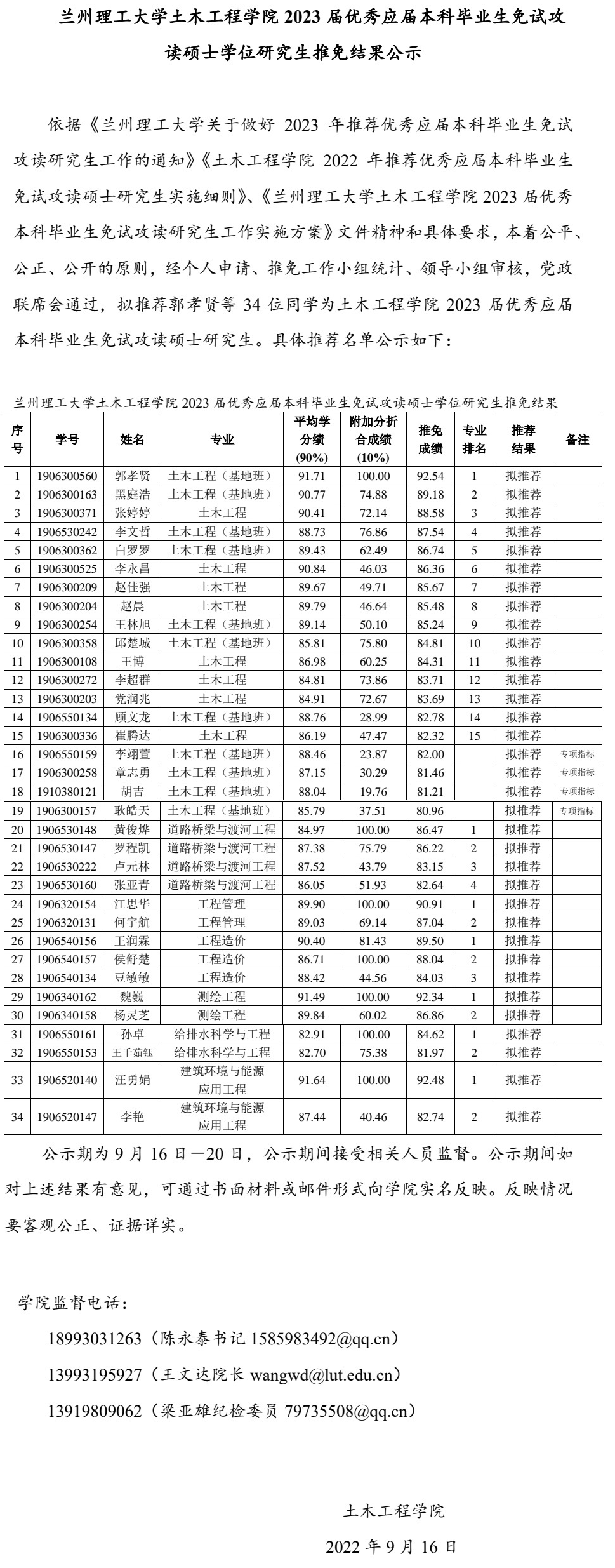 金年会jinnian2023届优秀应届本科毕业生免试攻读硕士学位研究生推免结果公示