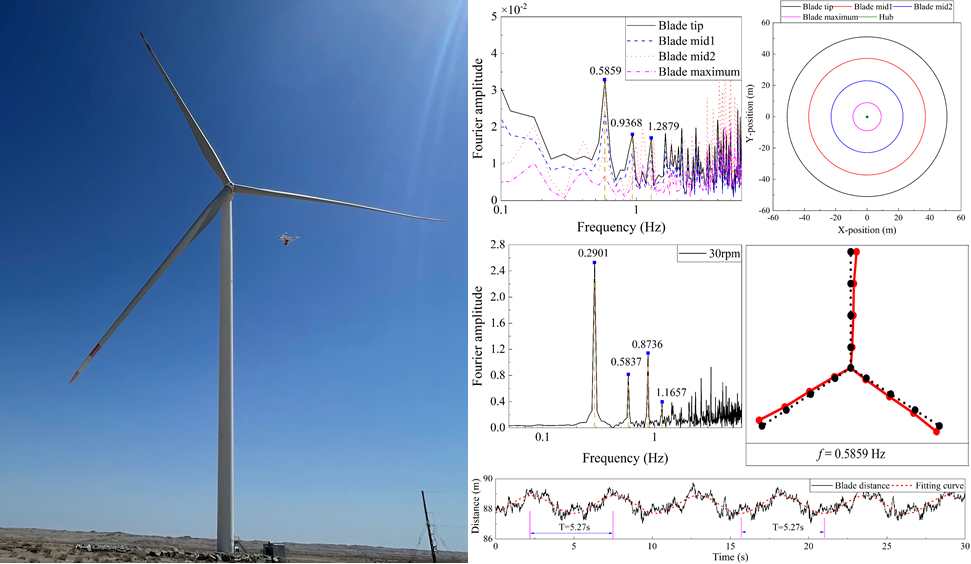风力机叶片作为风力机结构的关键部件,其运行状态关乎整机的安全性能。该科研团队创新性地提出了一种基于人工智能的风力机叶片无标记编码监测方法。该方法将无人机技术与深度学习算法相结合,以视频帧序列中的像素元作为感知单元,对风力机叶片实施精准分割、检测与跟踪,成功实现了非接触式、无损伤、低成本且高精度的叶片状态监测,试验验证和现场实测性能良好,为运行状态下的风力机叶片状态监测提供了新思路。该成果已在多座风场得到推广应用,累计节省运维成本5000余万元。
