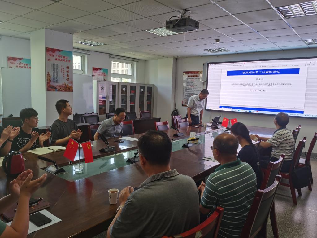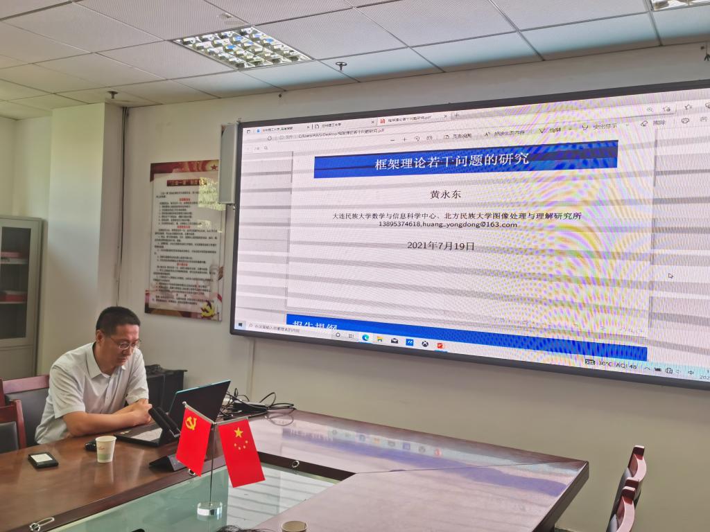 7月19日,应金年会金字招牌诚信至上邀请,大连民族大学副董事长黄永东教授来公司学术交流,黄永东教授做了题为“框架理论若干问题的研究”的学术报告,金年会金字招牌诚信至上经理王文达主持了学术报告会,公司部分师生聆听了报告。