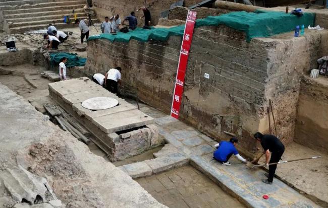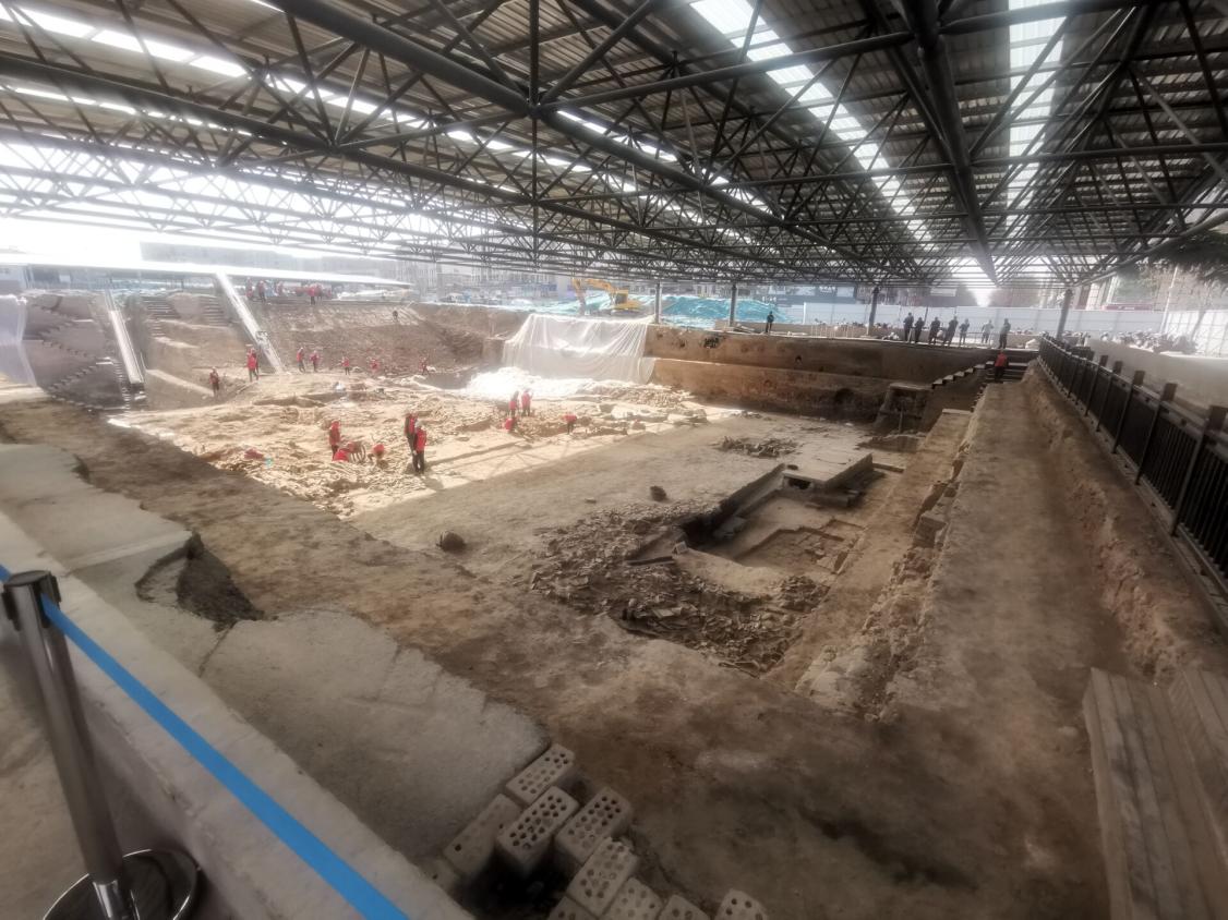 此次交流活动首站考察了州桥遗址。州桥遗址位于今河南省开封市中山路与自由路十字路口南约50米。据记载,州桥建造年份可追溯到唐代建中年间(780—783年),后经五代、宋、金、元、明,1642年被黄河泛滥泥沙淤埋。1984年被偶然发现后,进行了局部试掘。州桥遗址的发掘与保护对于研究北宋东京城内大运河的修筑方式、运河管理运行机制等有重要意义,对于研究北宋东京城的城市布局结构有重大价值。