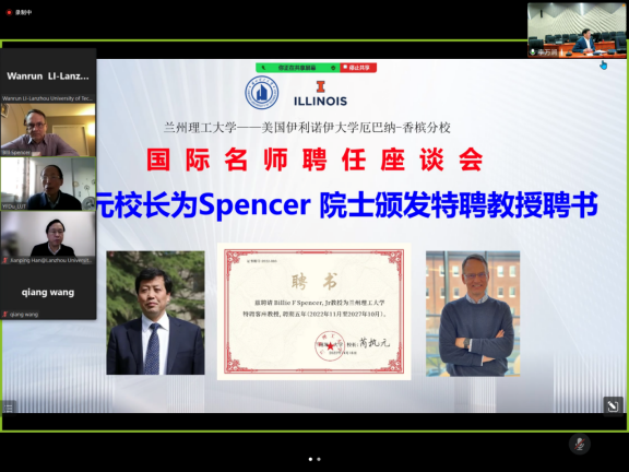 芮执元董事长为Spencer 院士线上颁发特聘教授聘书 (截屏)