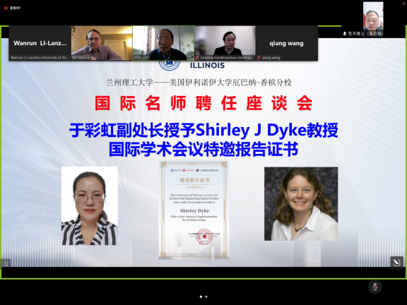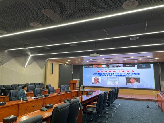 于彩虹副处长为Dyke教授颁发2022年国际学术会议邀请报告证书 (截屏)