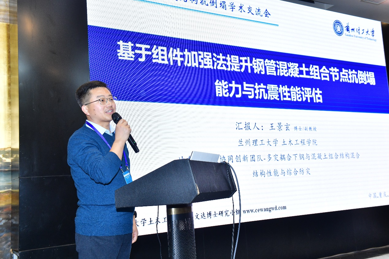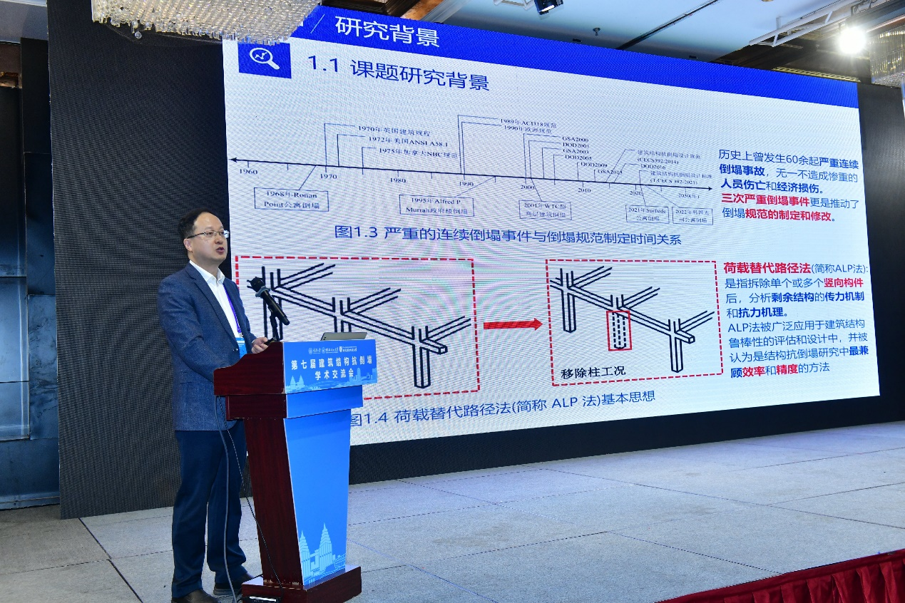 本次会议共安排12个大会报告、9个分会场15个邀请报告和54个专题报告。比利时皇家科学与艺术公司外籍院士、同济大学李国强教授,新加坡南洋理工大学Tan Kang Hai教授、清华大学陆新征教授、哈尔滨工业大学吕大刚教授等做了大会报告。“钢与混凝土组合结构混合结构”负责人王文达教授作了题为“钢管混凝土组合结构抗连续倒塌机理及提升策略”的大会报告,王景玄副教授作了题为“基于组件加强法提升钢管混凝土组合节点抗连续倒塌能力与抗震性能评估”的分会场邀请报告,郑龙博士做了题为“仿生吸能板提升停车结构防撞性能研究”的分会场专题报告。各报告人分享了在建筑结构倒塌领域的最新科研与应用进展,与会者间进行了积极的讨论和问答,现场交流气氛热烈。