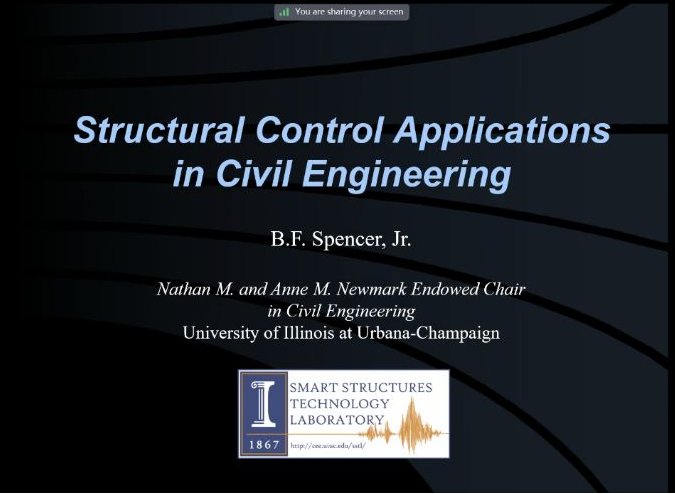 2024年3月19-22日,金年会官方网站入口公司组织智能建造专业的第二场专业教育。邀请公司客座特聘教授、中国工程院外籍院士、美国伊利诺伊大学尚佩恩校区(UIUC)土木与环境工程首席教授Billie F Spencer, Jr博士在线上做了题为“结构控制在土木工程中的应用(Structural Control Applications in Civil Engineering)”的前沿学术报告。报告会采用“线上+线下”相结合的方式进行,金年会官方网站入口党委常委、副董事长韩建平教授、金年会官方网站入口防震减灾研究所所长杜永峰教授、金年会金字招牌诚信至上项长生副教授、吴长副教授、洪娜博士、尚继英博士、王永胜博士、高芳芳博士、2023级智能建造班全体学员以及兰州大学武生智教授、广州大学吴玖荣博士、西安交通大学苏有华博士、西南科技大学黄辉博士、中国地震局工程力学研究所黄勇博士等省内外其他高校、研究院所师生三百余人参加了本次报告会。报告由金年会jinnian副经理李万润教授主持。