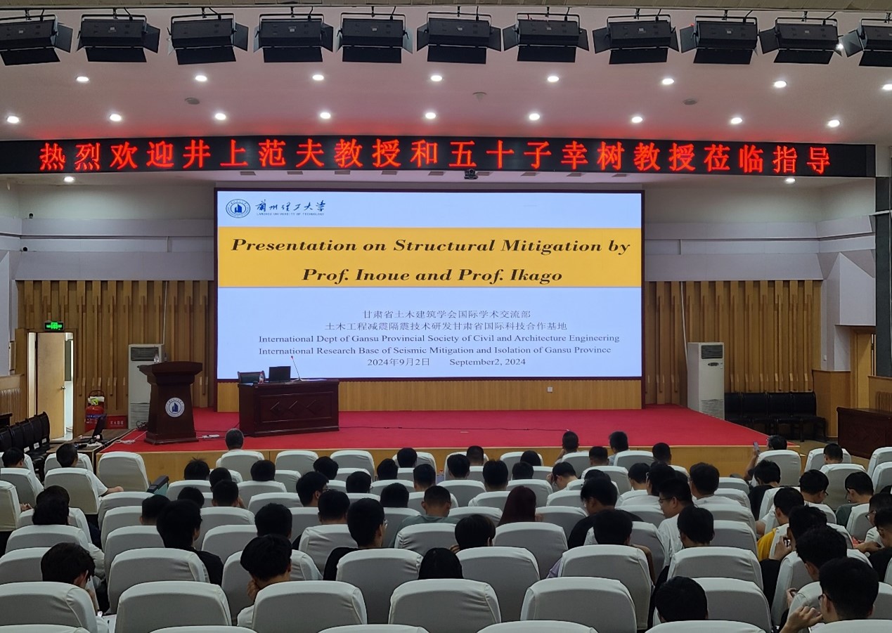 9月2日下午,井上範夫教授和五十子幸树教授在金年会官方网站入口兰工坪校区逸夫科技馆二楼报告厅做学术报告。报告由金年会官方网站入口防震减灾研究所所长杜永峰教授、韩建平教授主持。甘肃省建筑设计研究院有限公司副总工程师黄锐、高级工程师刘国龙,甘肃省建设设计咨询集团有限公司总工程师王栋,甘肃省城乡规划设计研究院总工程师芮佳,兰州有色冶金设计研究院有限公司王兆辉高工,甘肃省土建学会国际学术交流部秘书长程选生教授,金年会金字招牌诚信至上石岩教授以及部分员工共二百余人参加了本次报告会。