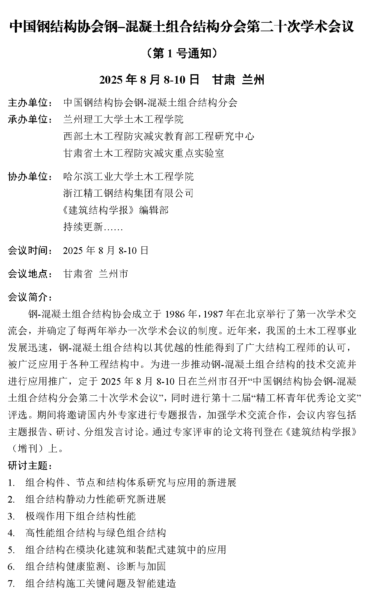 中国钢结构协会钢-混凝土组合结构分会第二十次学术会议(第1号通知)