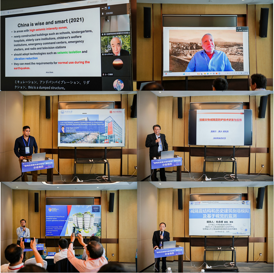 论坛邀请Akira Wada(和田章)教授和Paolo Clemente教授在线上分别作了题为“Earthquake disasters in big urban city”和“Increasing resilience of cities: new anti-seismic technologies for the seismic retrofit existing structures”的主旨报告,分别介绍了日本、意大利隔震技术的一些应用情况以及对城市韧性的影响,分析了现代化大都市技术分灾及韧性提升等面临的挑战。论坛还邀请来自智利的青年学者Sergio Reyes Arriagada博士,应急管理大学(筹)的海外高层次人才温留汉·黑沙教授,新加坡南洋理工大学的朱高鸣博士后研究员分别作了题为“Low-cost seismic isolation system based on elastomeric rolling spheres: Numerical modeling and shake-table test”、“馆藏文物减隔震防护技术研发与应用”、“Development of a novel precast composite system: Towards application in seismic regions”的报告。杜永峰教授作了题为“减隔震结构和历史建筑倒塌模拟及基于视觉的监测”的报告,介绍了公司防震减灾团队在隔震结构和历史建筑、风电塔筒结构倒塌模拟等方面的研究工作。