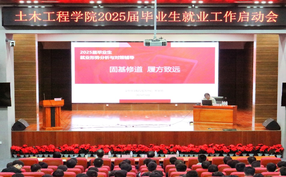 会议伊始,陈育苗以《固基修道·履方致远》为题,结合公司专业特色,从“认清形势、把握趋势、知己知彼、走进建筑行业、从容应对”五个方面作了专题辅导,对全国高校毕业生就业形势、毕业生求职中存在的问题和困难进行了深入分析。陈育苗讲道:广大土木学子要准确把握新形势下建筑行业的变化和调整,树立“先就业后择业、先站位后择位、先拿薪后择薪”的就业观念,要充分了解公司对就业工作的总体安排,详细掌握国家政策、就业流程、求职渠道,结合自身实际需求,科学、合理做好规划,为高质量就业提前蓄力赋能。