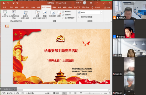 为充分发挥党支部的战斗堡垒作用和党员的先锋模范作用,落实党支部、团支部、班委会三位一体协同工作机制,实现高年级与低年级的传承与帮扶。3月27日,在中共金年会jinnian给排水科学与工程本科生支部委员会号召下,给排水专业全体师生举办以“世界水日”主题的党日活动,助力实践育人。此次活动特别邀请给排水科学与工程系主任王亚军作为指导老师,活动由支部书记张彩霞主持。