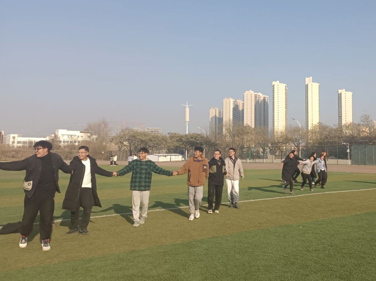 本次班级团建活动老师、同学欢聚运动场,趣味性强,参与度高,给同学们的学习生活增添许多乐趣,缓解了期末的学习压力。比赛中,同学们轮番上阵,拉拉队员高声呐喊,大家在运动中合作拼搏,齐心协力,展现了拼搏进取、团结友爱的良好精神风貌,提升了班级凝聚力。