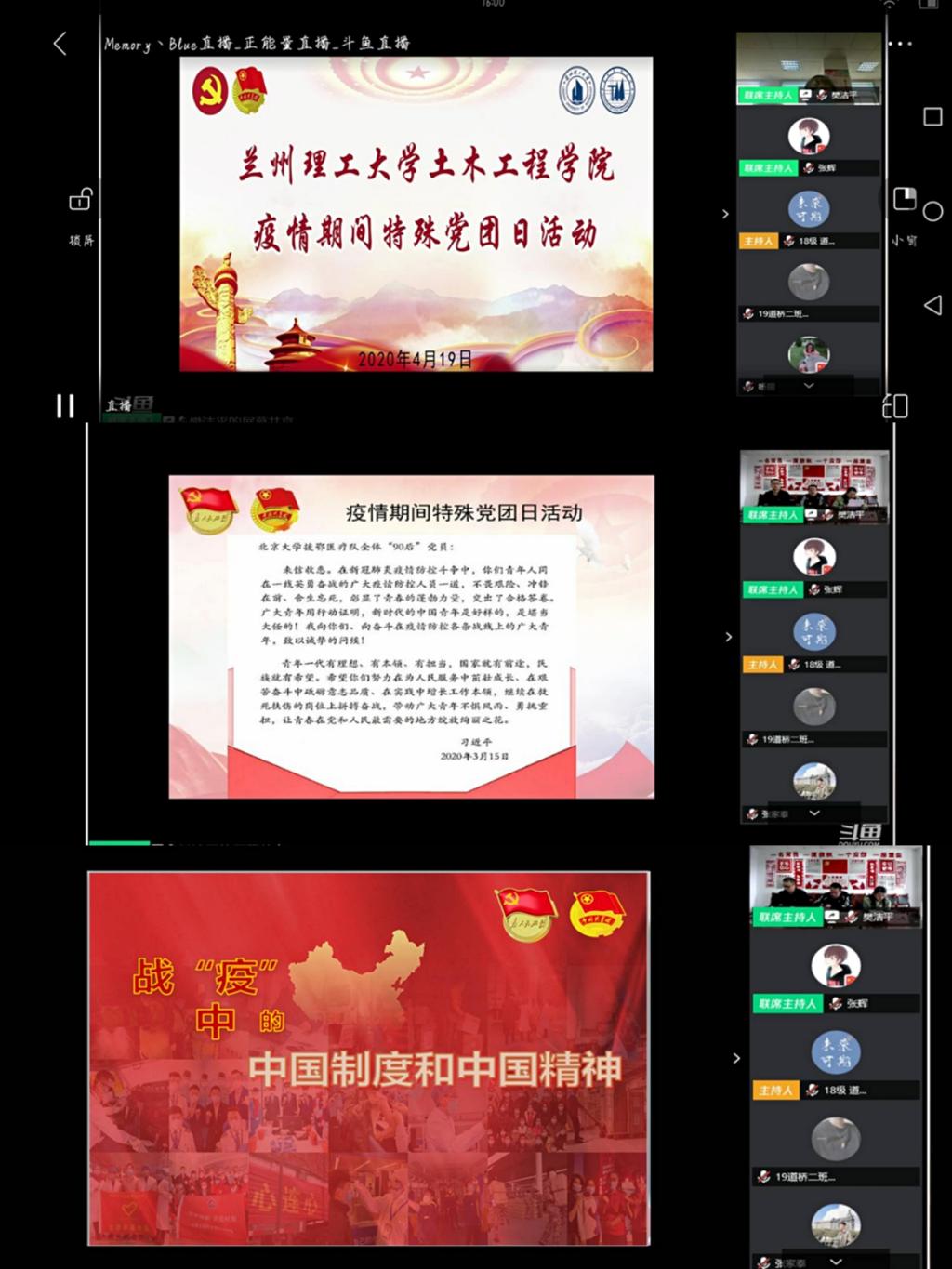 4月19日下午,公司开展了疫情期间“线上”主题党日团日活动,公司党委书记田治学及全体辅导员参加了活动,公司师生共计3000余人观看了活动直播。