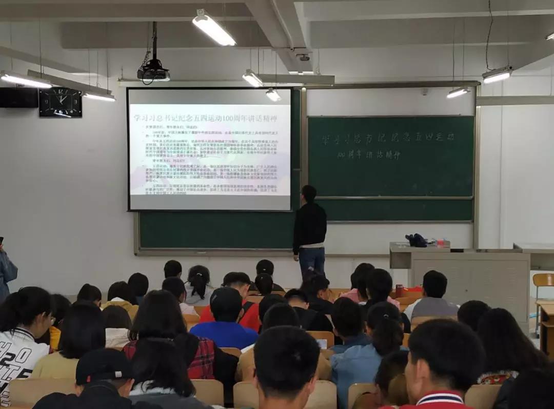 为进一步领会五四运动的历史意义与时代精神,加强爱国主义教育,提升员工对党建、团结的积极性与工作热情,18级工程造价一班团支部于5月9日中午12点在西教4—205开展了学习习近平总书记纪念五四运动100周年讲话精神团日活动。