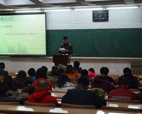 在2013年秋季期末考试来临之际,为响应公司党委研究生工作部及研究生院的号召,并进一步加强公司研究生考风考纪教育,搞好学风建设工作,金年会金字招牌诚信至上2013级全体研究生于11月21日晚7:30在校本部1北303教室召开了研究生考风考纪教育活动,号召大家重视考风考纪,杜绝考试作弊行为的发生。