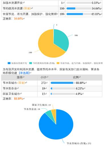 本次竞赛形式新颖,内容丰富。竞赛结束后竞赛组委会对比赛结果进行了统计分析,基于科学的数据确定了后期的节水知识宣传教育重点。