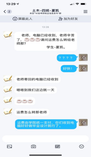 得知公司为员工免费邮寄电脑的消息,同学们纷纷表示对公司的贴心服务感到很温暖:“疫情防控期间,我充分感受到公司的关心,公司及时帮助我们邮寄电脑,让我减少了恐慌和焦虑,使得我们安心的在家完成所有学习任务。疫情很残酷,公司的关心却很温暖,很感谢公司和公司!”“虽然相隔千里,但公司老师的关爱却像近在身边一样,温暖备至。我一定好好做毕业设计,争取拿个优秀!”