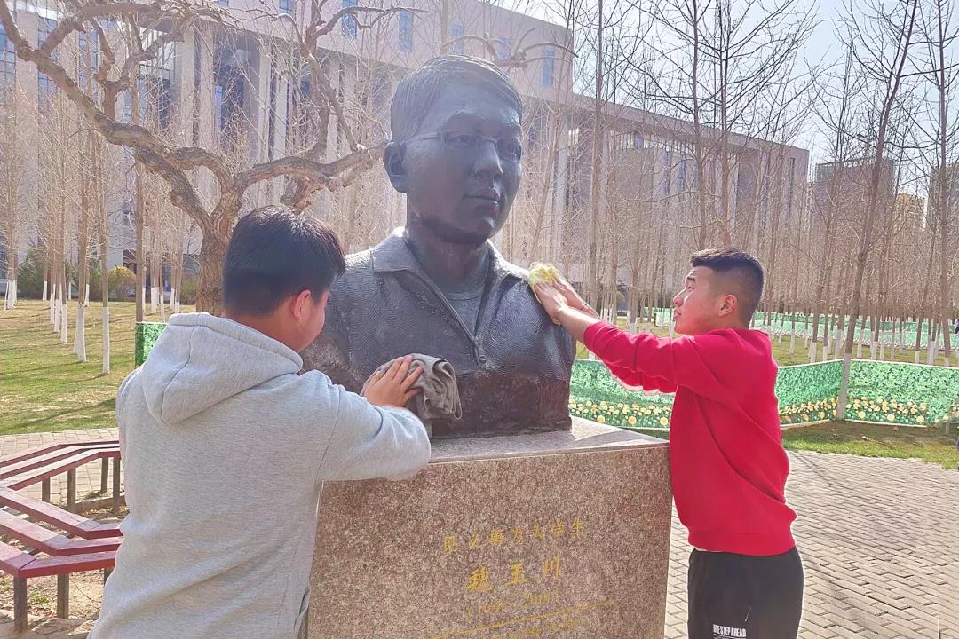 活动开始,同学们在班委的组织下,对玉川雕像和玉川广场进行清扫。随后,班主任丁勇辉老师向全班同学介绍了魏玉川同学的英雄事迹,魏玉川同学舍己救人的英勇事迹,展现了当代老员工崭新的精神风貌,践行了社会主义核心价值体系,他用满腔热情和宝贵生命诠释了当代老员工的价值追求和理想信念。希望同学们努力学习、勇敢面对生活,以实际行动告慰英雄的在天之灵。最后同学们怀着崇敬的心情向玉川雕像三鞠躬致敬,敬献花篮,以表达对魏玉川学长的缅怀之情,气氛庄严肃穆。