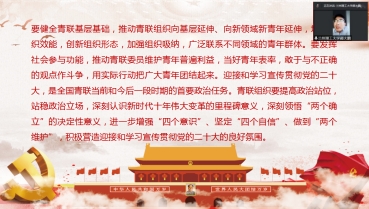 通过此次“每月一学”活动的持续开展,员工会、研究生会工作人员对青联是党缔造和领导的青年组织的属性认知更加清晰,对团结带领各族各界青年坚定跟党走理想信念的重要使命更加明确,对圆满完成迎接党的二十大的政治任务更有信心。