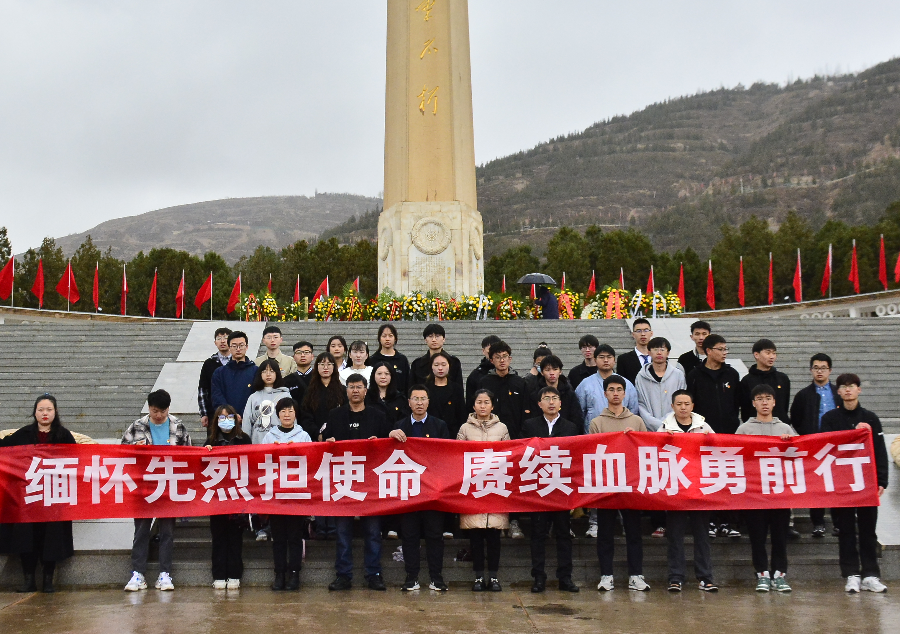 “清明雨纷纷 哀思寄英魂”为缅怀革命先烈,弘扬民族精神,加强爱国主义教育,把党的革命精神和优秀传统融入到党团建设之中,引导广老员工师生在学思践悟中坚定理想信念,4月2日,金年会jinnian团委、测绘教职工党支部、研究生党支部和本科生党支部、2023届青马班学员及2022级工管团支部员工代表于清明节前夕,赴兰州烈士陵园开展了以“缅怀先烈担使命康续血脉勇前行”为主题的祭扫仪式与教育参观。